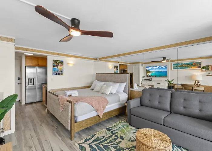 この29m²のアパートはクヒオ ビーチからわずか1kmで、ホノルル動物園からわずか1.6kmの場所にあります。 Hale Nalu Waikiki Studios Ocean View King Size Bedはワイキキ ビーチ ウォークすぐ近くの場所にあります。 フォート・デ・ルッシー・ビーチパークもアパートから徒歩で25分の場所にあります。